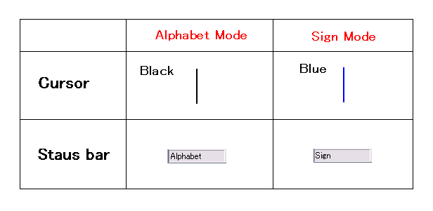 There are the two input methods of Sign mode and Alphabet mode in this editor.