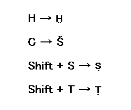 In Sign mode, the input of some transcription characters is changed as follows.